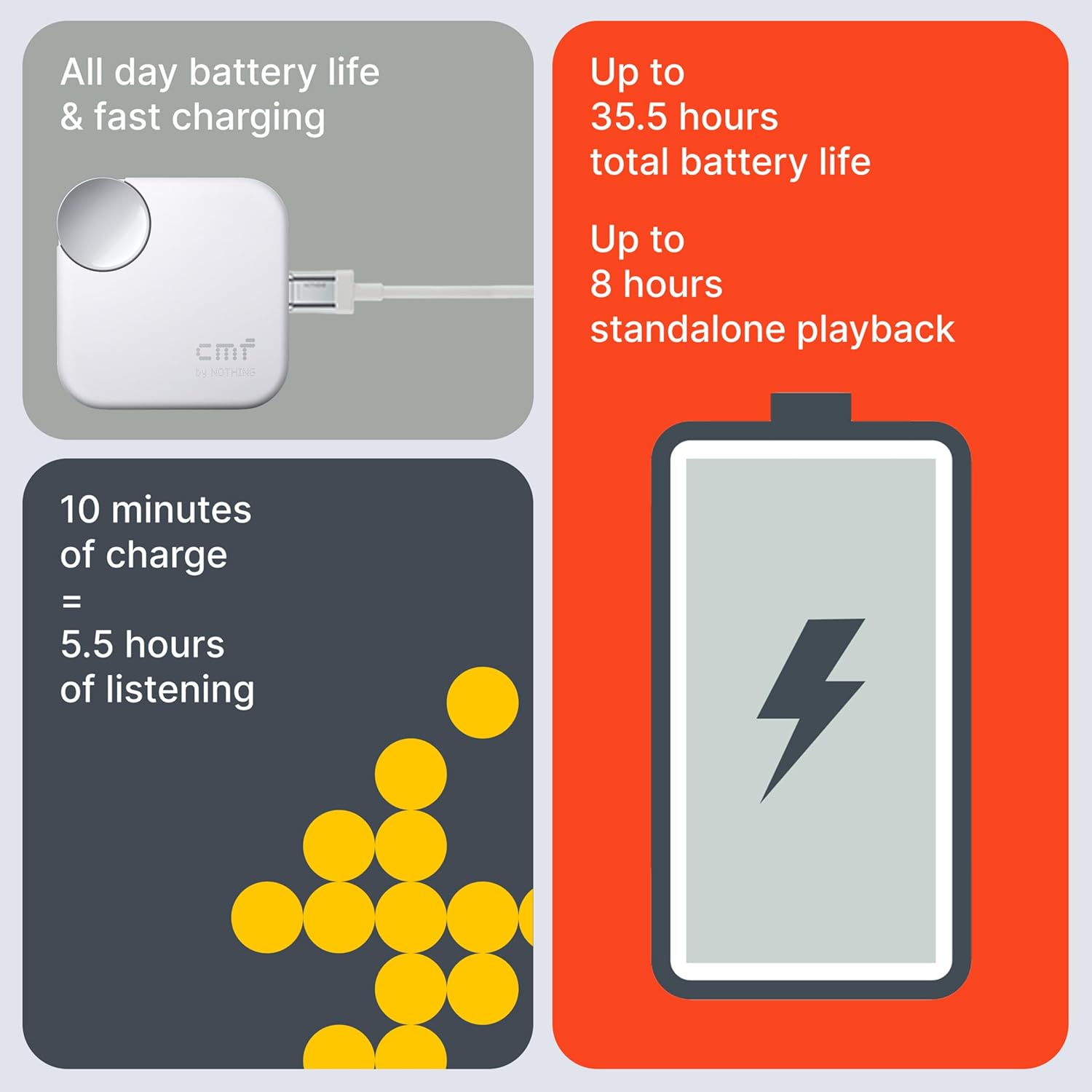 - 📱 Universal Compatibility with Android & iPhone No more pairing issues! CMF Buds support Bluetooth 5.3 for faster, more stable connections across Android, iOS, tablets, laptops, and Windows devices. Just open the case, and you're paired in seconds.